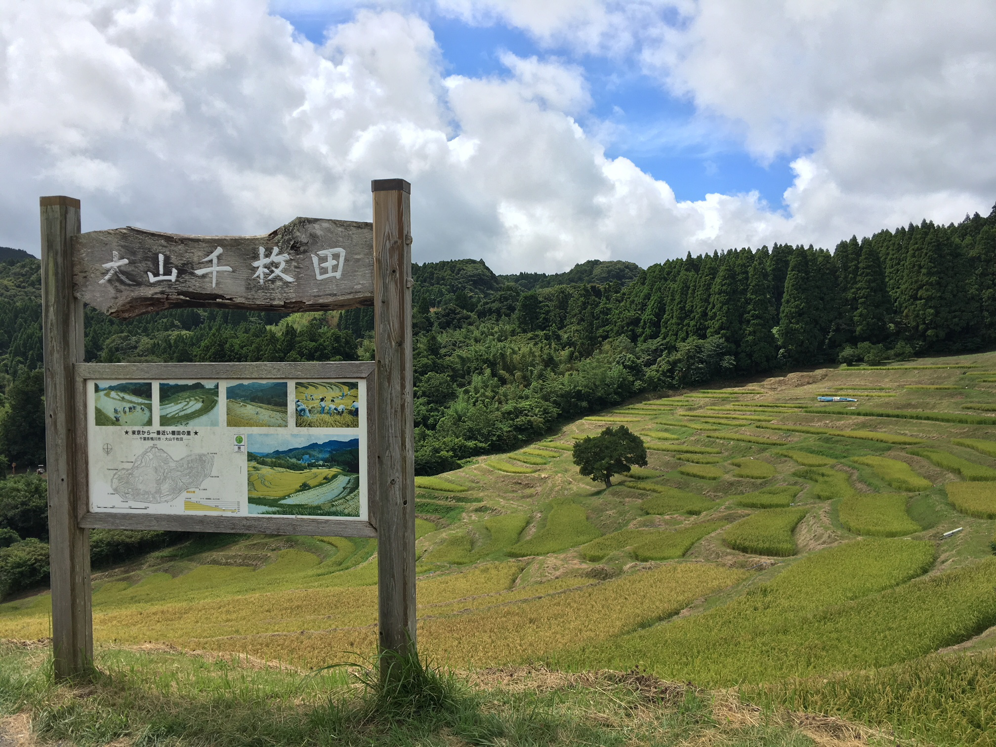 大山千枚田は、鴨川の中山間に位置し房総半島のほぼ真ん中にあり、東京から一番近い棚田として知られています。平野の田んぼと違って耕地整理が遅れたことが、この美しい棚田を現代に残すことになりました。